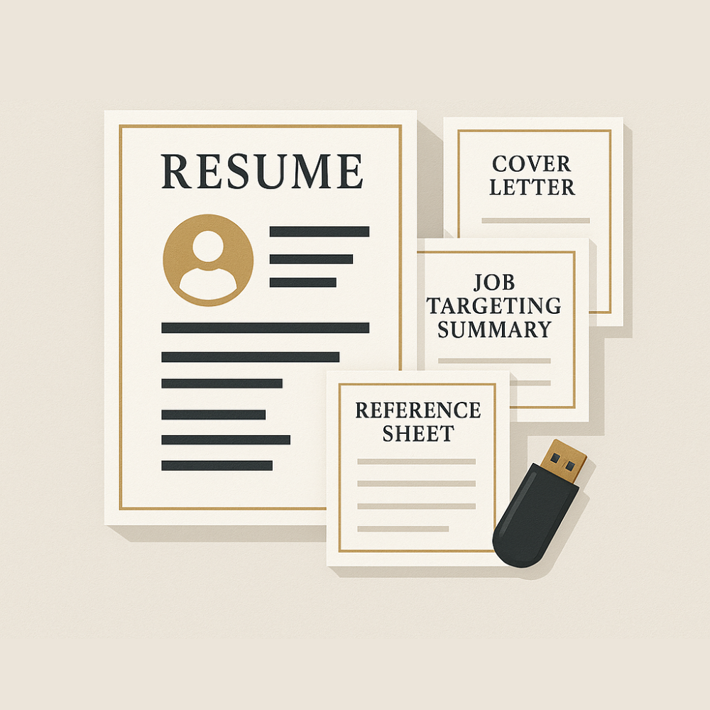 We understand the importance of convenience and efficiency in your job search process. That’s why this package lets you choose from four delivery formats, including digital and physical methods, for seamless integration into your career strategy. A flash drive with all deliverables ensures you always have access to your essential documents on the go.